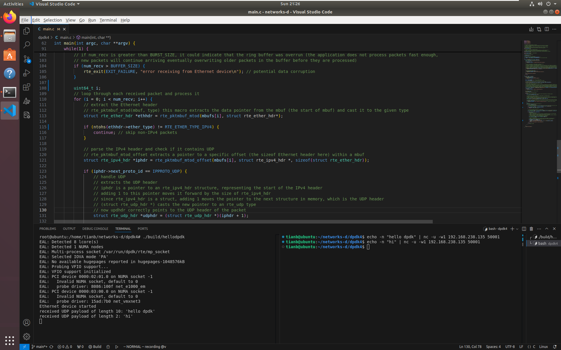 User Space (DPDK Application): The packets are directly transferred to user space without going through the kernel’s networking stack. DPDK libraries manage the packet buffers, and the application processes them directly in user space.